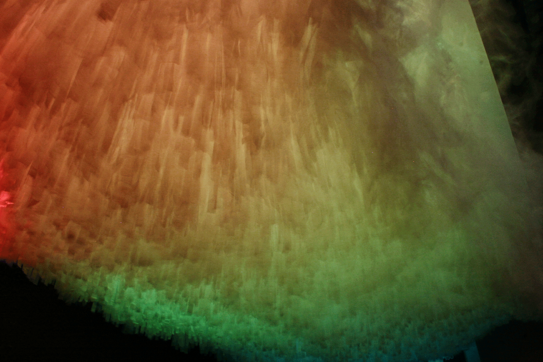As participants wander through the diffusive curtain, the constantly-changing field of color floods their vision and forces them into unexpected interactions by suspending spatial awareness.